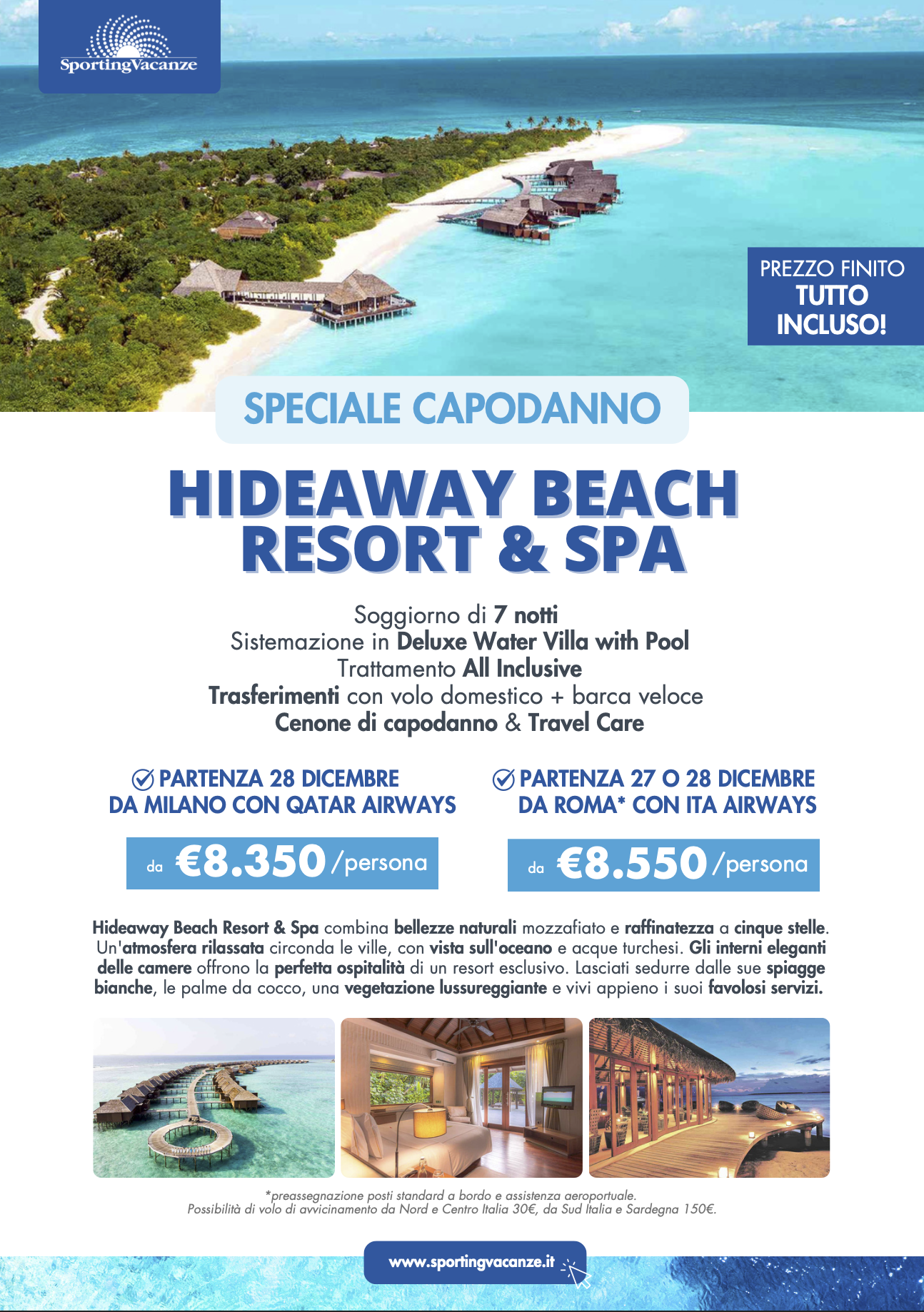 L’atmosfera maldiviana guida ad un naturale stato di relax: la spiaggia fine, le onde dell’Oceano, i colori in perfetta armonia sono gli ingredienti ideali per momenti unici, da vivere completamente. Ma le isole offrono anche dei servizi attraverso le migliori spa. Una giornata alla spa significa massaggi e benessere nel lusso circondato dai terapeutici colori di una meravigliosa natura selvaggia.Sei alla ricerca di una vacanza rilassante e avventurosa?Eleganti resort, meravigliose spiagge di sabbia bianca e splendide acque cristalline, sono solo alcuni degli elementi che fanno di un soggiorno alle Maldive un’incredibile vacanza da sogno. Momenti di assoluto relax in un ambiente marino incontaminato, si alternano a divertenti sport acquatici ed emozionanti escursioni, gite in barca, cene notturne in mare aperto e altre divertenti attività, proposte dalle diverse strutture.